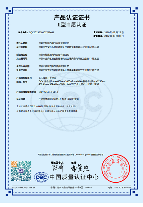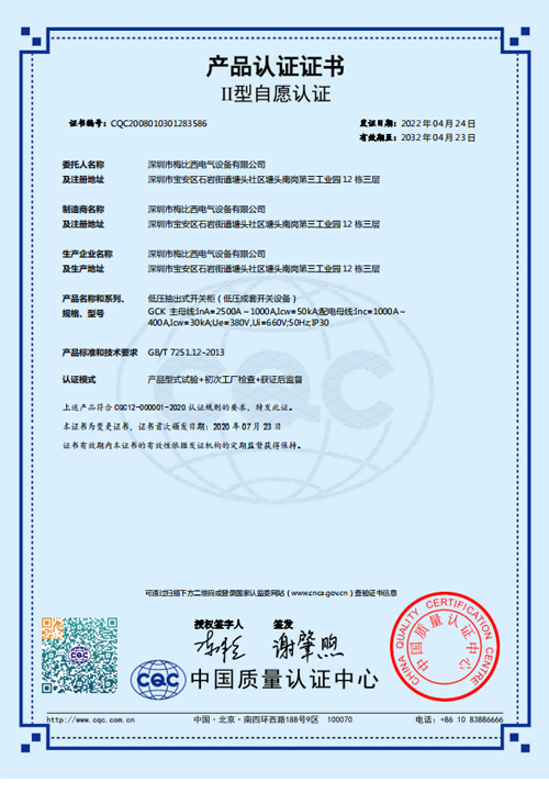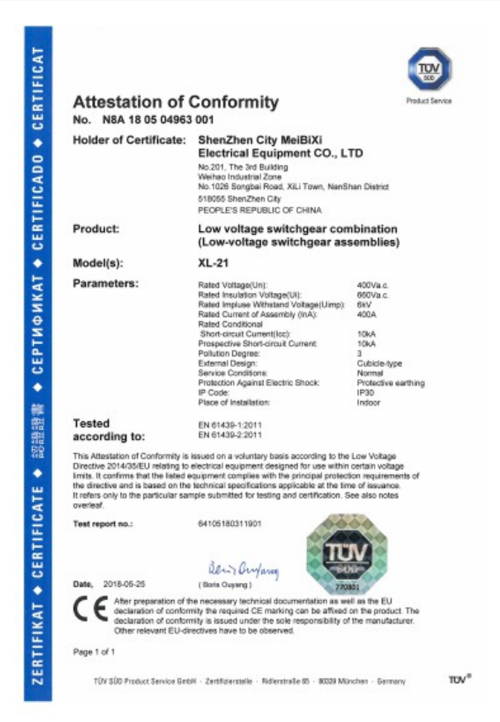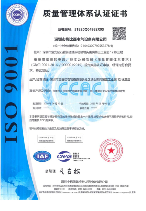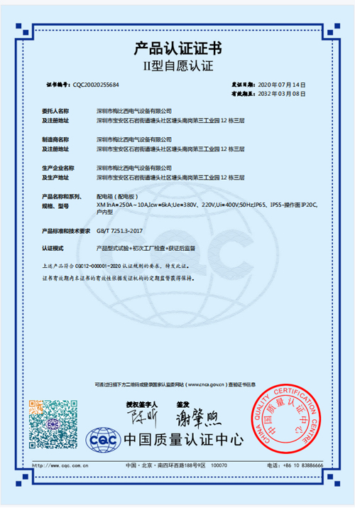 Shenzhen Meibixi Electrical Equipment Co., Ltd. is a professional design, manufacture of precision intelligent power distribution equipment, low-voltage switchgear and industrial electrical automation control equipment entity company, is the earliest focus on the field of power distribution room company.Products obtained CCC certification issued by China Quality Certification Center, CE certification, ISO9001 quality system management certification and EMC certification.